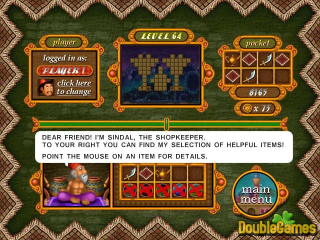 לכו על טיול אקזוטי ברחבי הארץ של אלדין ב סמל זה הרפתקני התאמת המשחק. אופי פיק האהובים עליך לשחזר את 120 חלקים חסרים של השטיח קסמים, לאסוף שיקויים המסחר פריטים valueful עם המוכר בעיר. הפוך את האגדה התגשם והוא מוצא את עצמך עף לעבר האדמות שמעבר לדמיון העמוק ביותר שלך.
